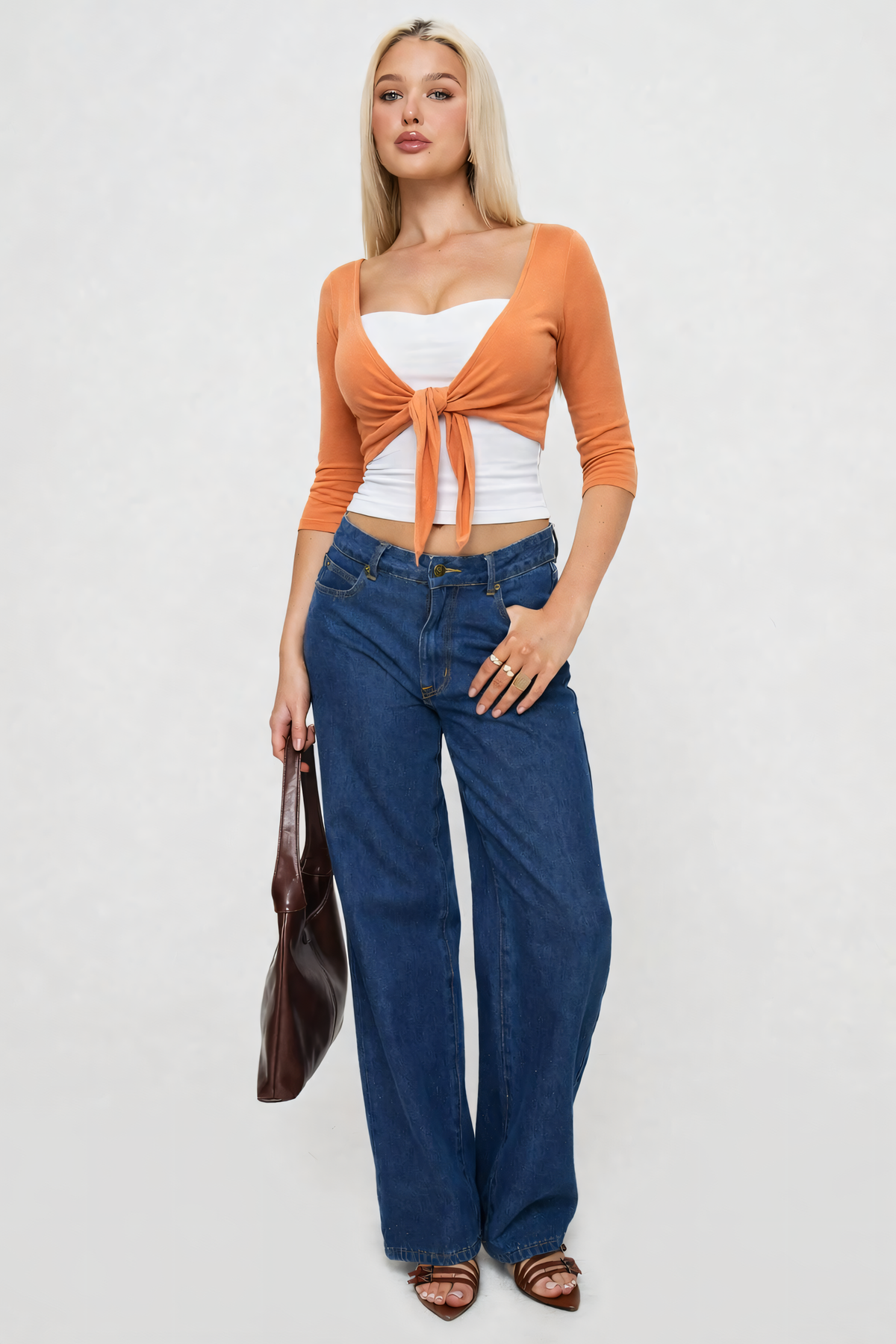 The Sleek Front Wrap blends modern femininity with effortless styling. Designed with a flattering sweetheart inspired neckline and a soft tie front detail, it creates a sculpted silhouette while maintaining a relaxed, comfortable feel. The layered effect adds dimension, while the cropped length enhances the waist for a confident, contemporary look.