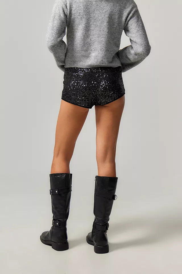 Feel like a true vision in teal with these Sequin Velvet Shorts, its graceful design and delicate lace evoking feelings of romance and enchantment, perfect for creating unforgettable memories.